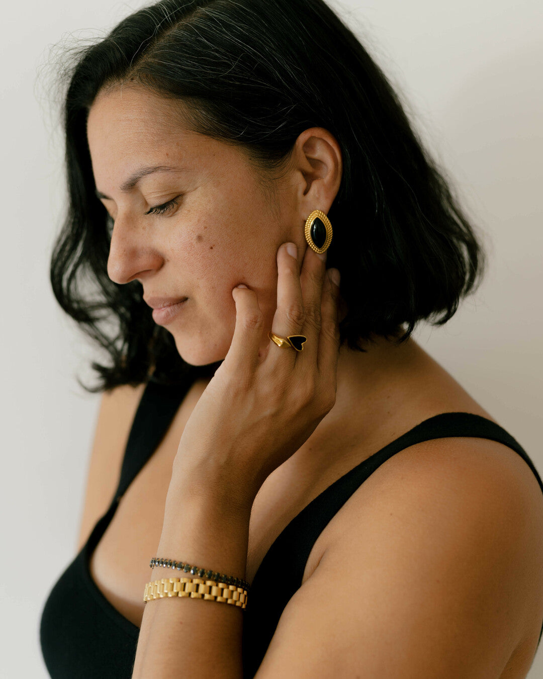 Polished yet punchy, the Black Agate Marquise Studs feature deep black stones that add a moody touch to any look. Paired with the ornate rope frame, they’re pure vintage glam with an edge.