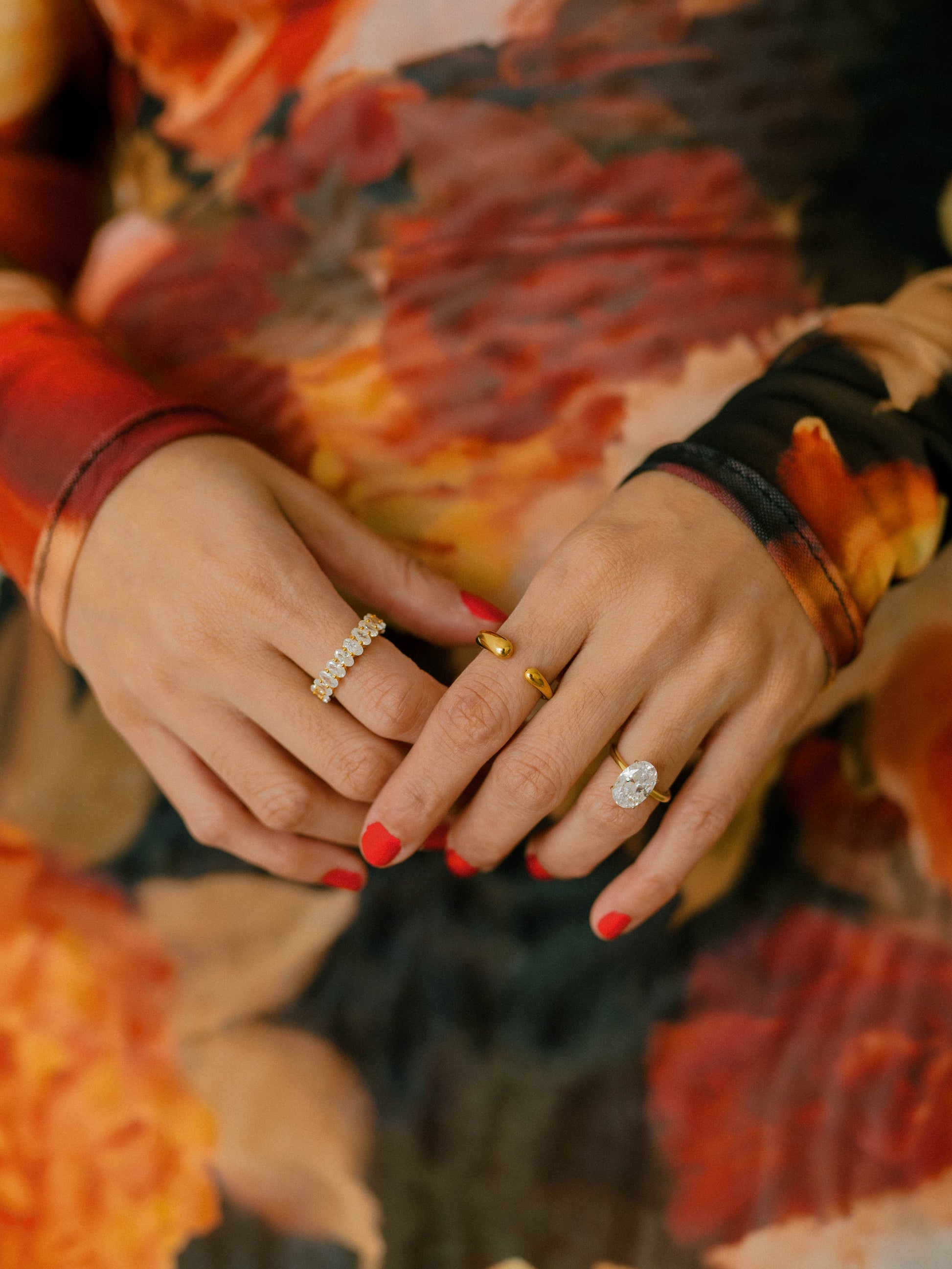 Say hello to timeless sparkle. This eternity band features a row of white oval-cut cubic zirconia stones set in gleaming sterling silver, giving you maximum shine with zero effort. A statement piece that stacks beautifully or stuns solo.