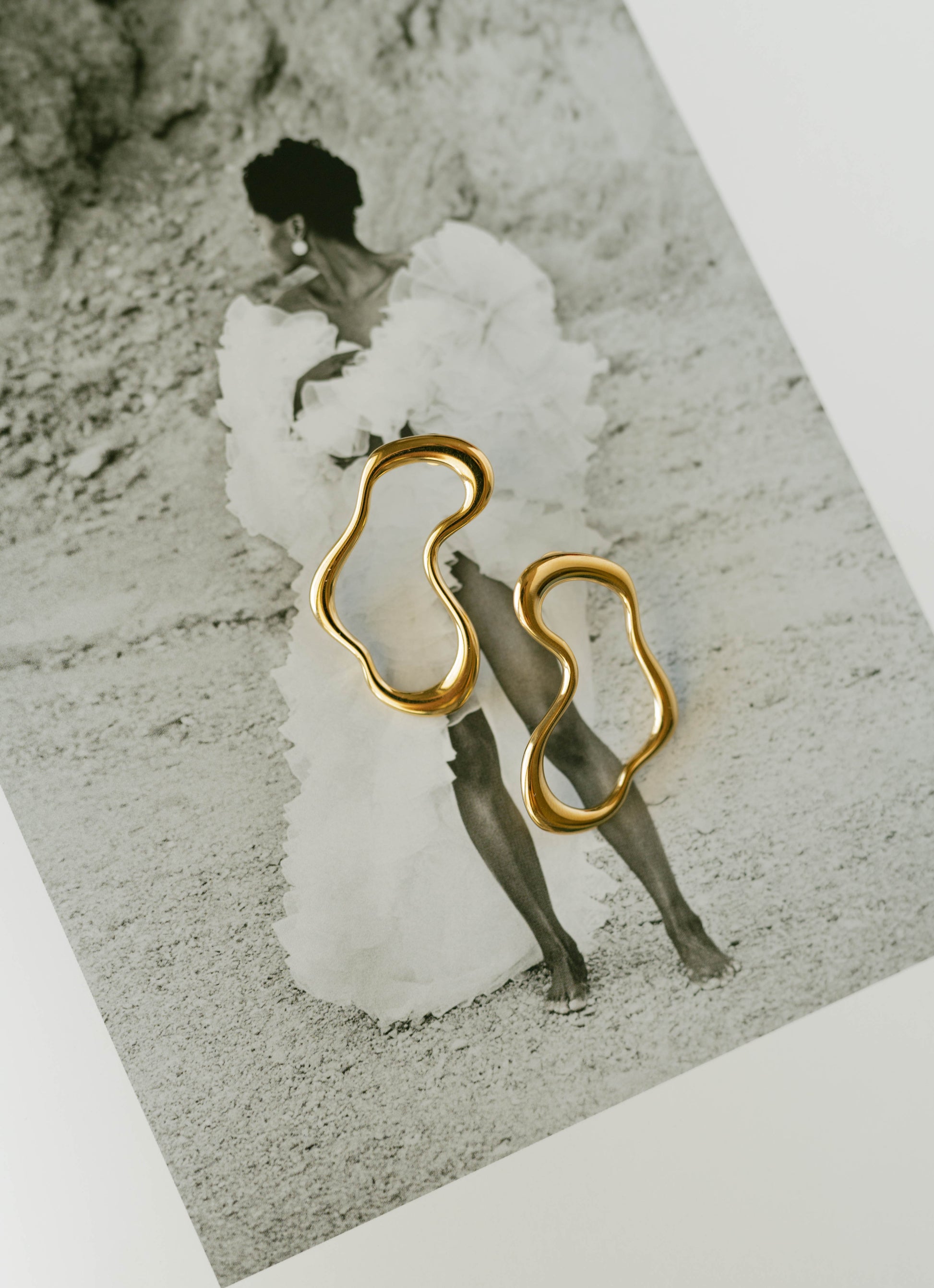 Artful curves meet modern minimalism. The Fluid Wave Earrings make a sculptural statement with their organic silhouette and high-shine gold finish, the perfect blend of bold and timeless.