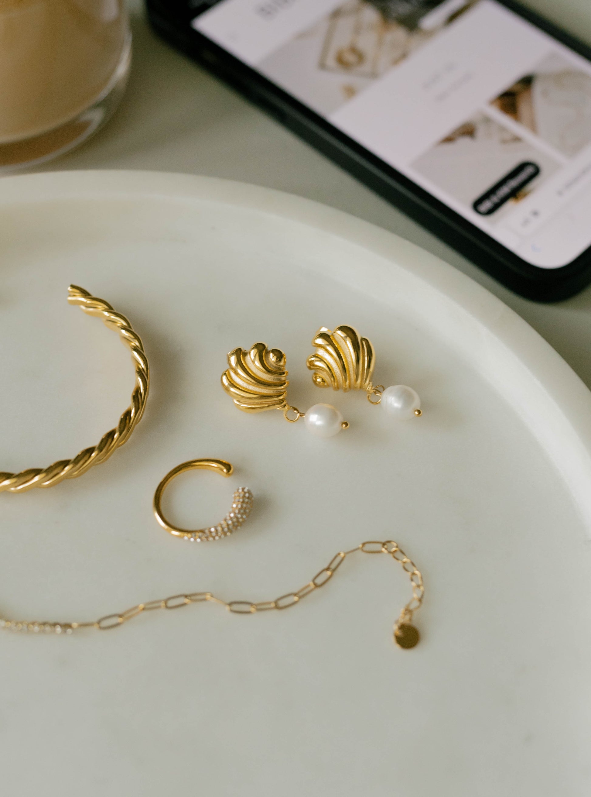 Channel vintage coastal elegance with these Shell & Pearl Drop Earrings. Featuring a sculpted gold shell and a dangling freshwater pearl, they’re your perfect touch of seaside sophistication—no beach required.