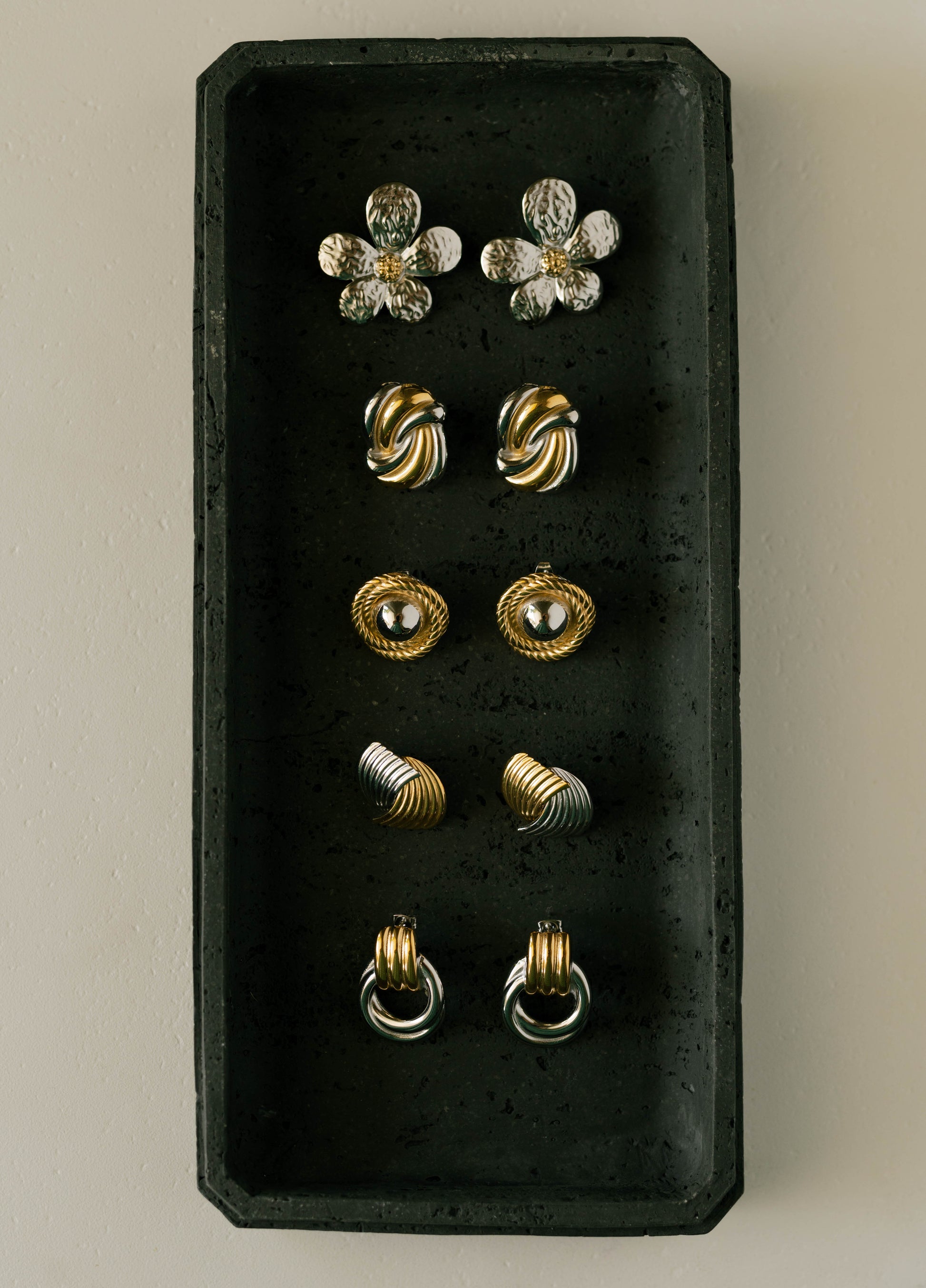 Where classic form meets bold contrast. The Link Earrings blend polished gold and silver tones in a chunky, vintage-inspired silhouette that feels timeless and trend-forward. Your new go-to for mixing metals without overthinking it.